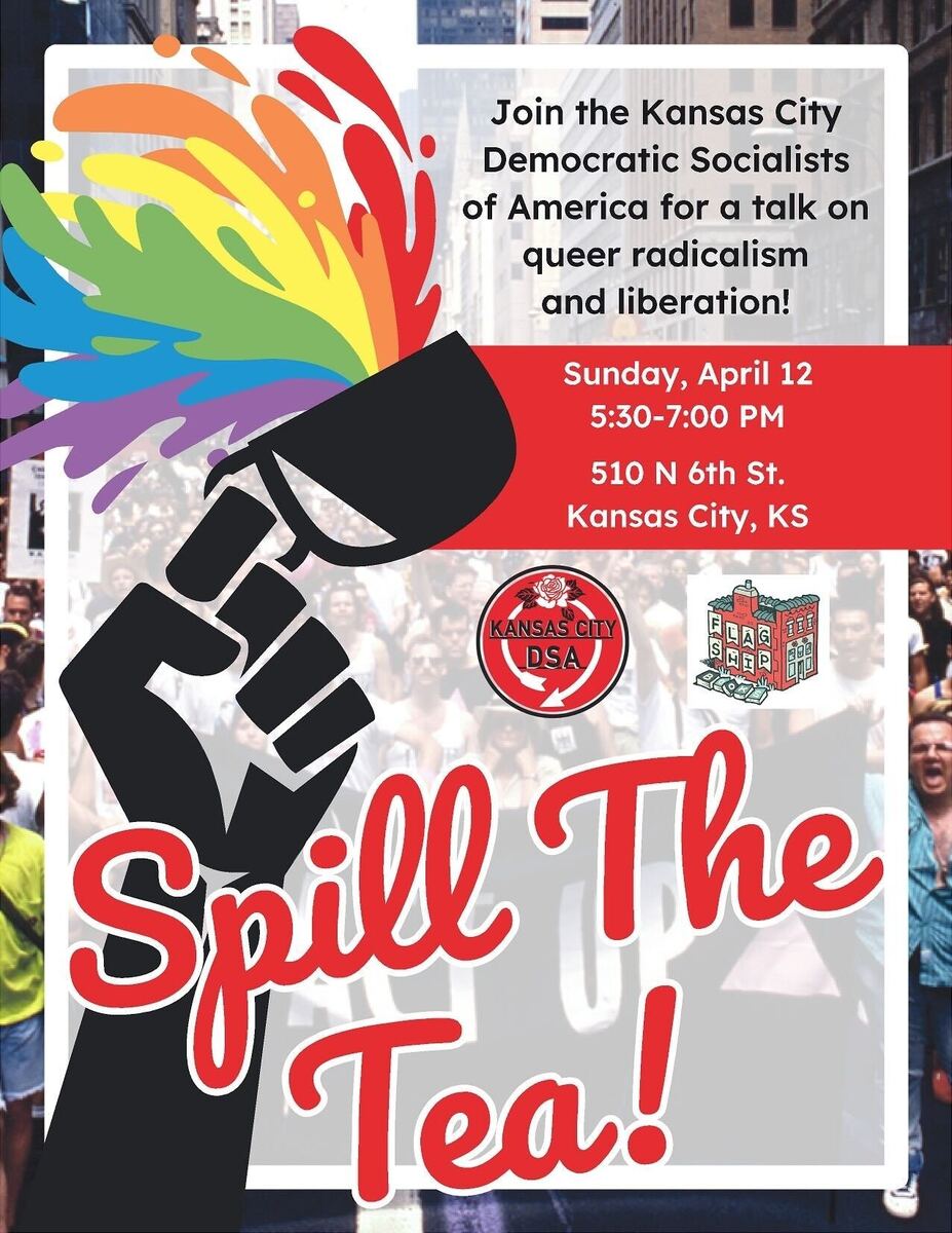 Join the Kansas City Democratic Socialists of America for a conversation about the history of queer radicalism and why it matters. We’ll hear from members of the Queer Socialist Subcommittee before opening up to a group discussion. We’ll have light refreshments and, of course, tea!